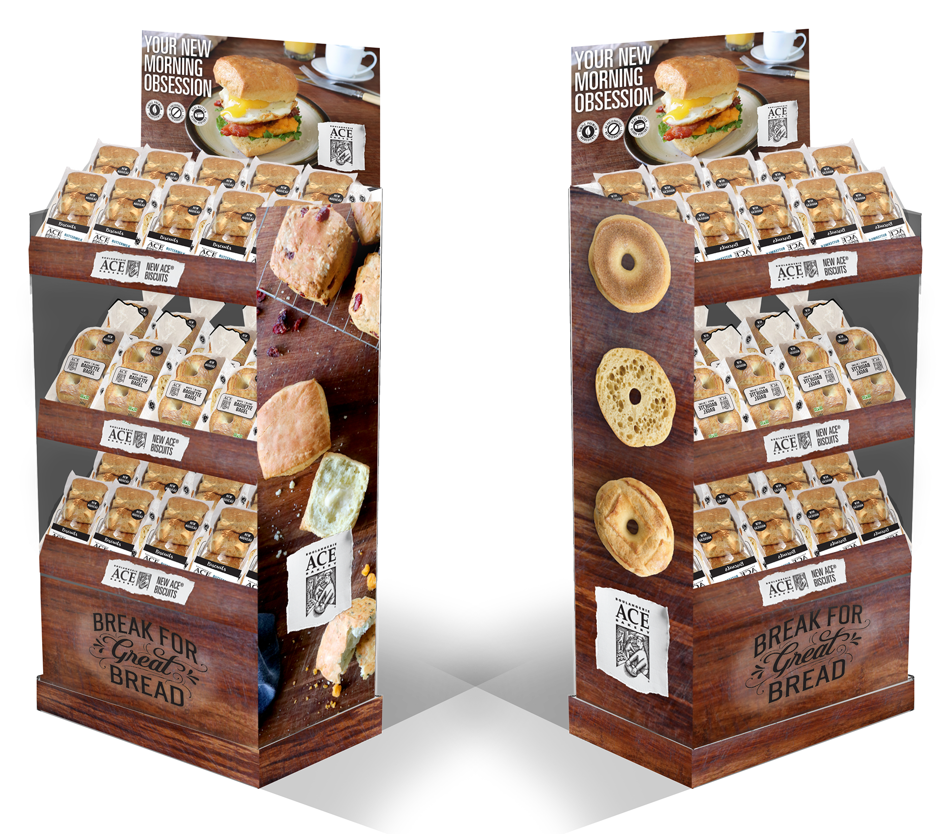 ACE® Biscuits Corrugate display artwork: Due to EOY budget challenges, I needed to create artwork for the Launch of ACE® Biscuits from the ground up. From the Food styling & Photography, to the design, production, and rendering. Start to finish I had my hands on everything to do with this POS display.