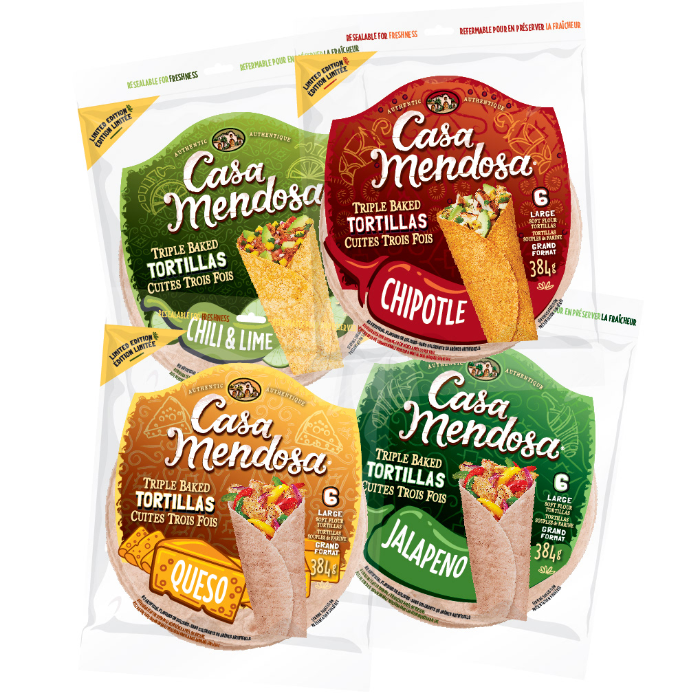 I'm excited to share my latest packaging design project for Casa Mendosa, a brand that's all about authentic and bold Mexican flavors. The creative brief for this project was to create a new line of limited edition Casa Mendosa Tortilla flavors that would fit seamlessly within their current product line, while also standing out as a premium offering.