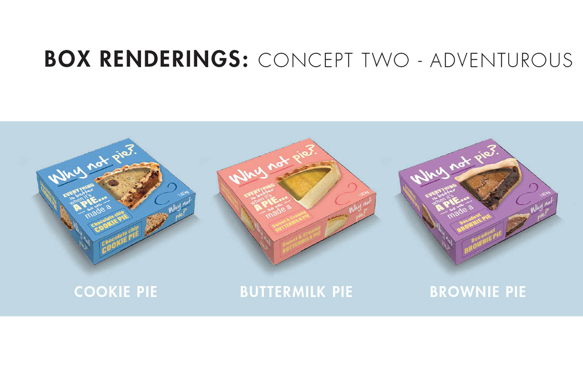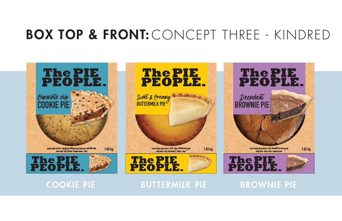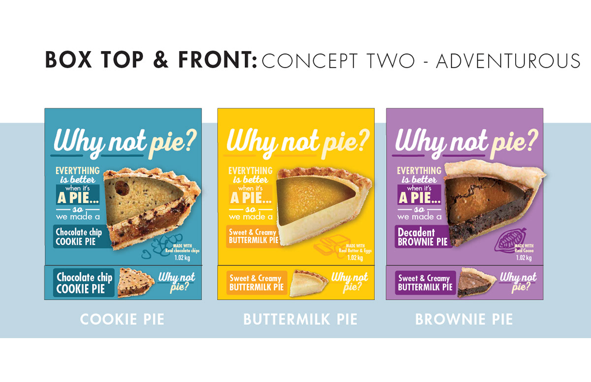 I made sure to put thought towards how we could expand the packaging in the future if the line of pies is successful. With Indulgent Pies, we are breaking the mold and introducing a new, exciting look to the pie category.