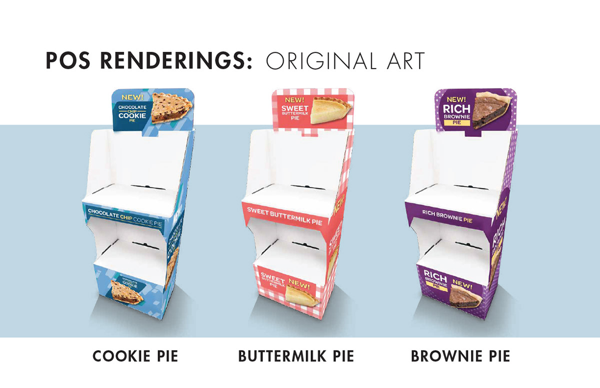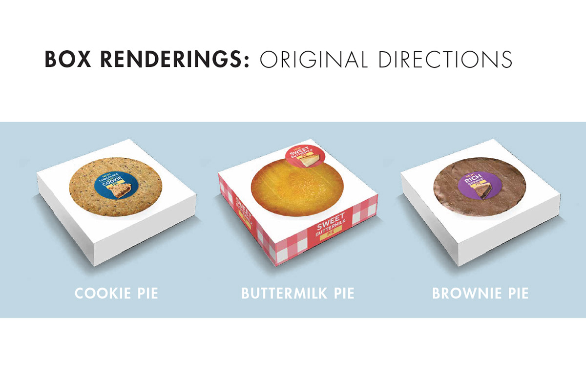 The original brief was focused on getting some labels for the pies, but I worked with the brand team to reprioritize and create a breakthrough look for the packaging. We wanted to break the mold of the universally bland packaging found in the pie category, while still ensuring that the designs were easily recognizable as pie.